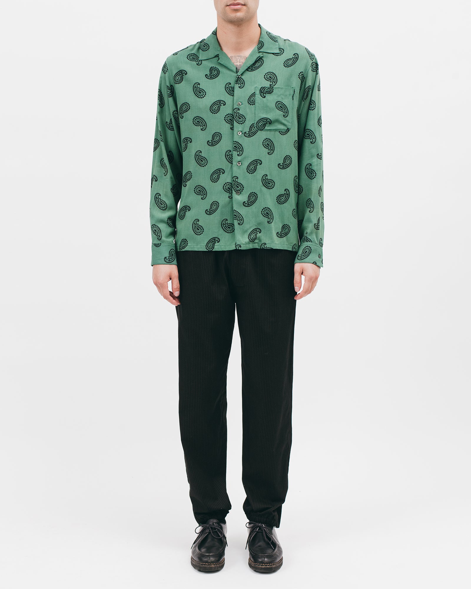 The Paisley Rayon LS Shirt is a lightweight evening shirt constructed in a Japanese rayon with a custom pattern.