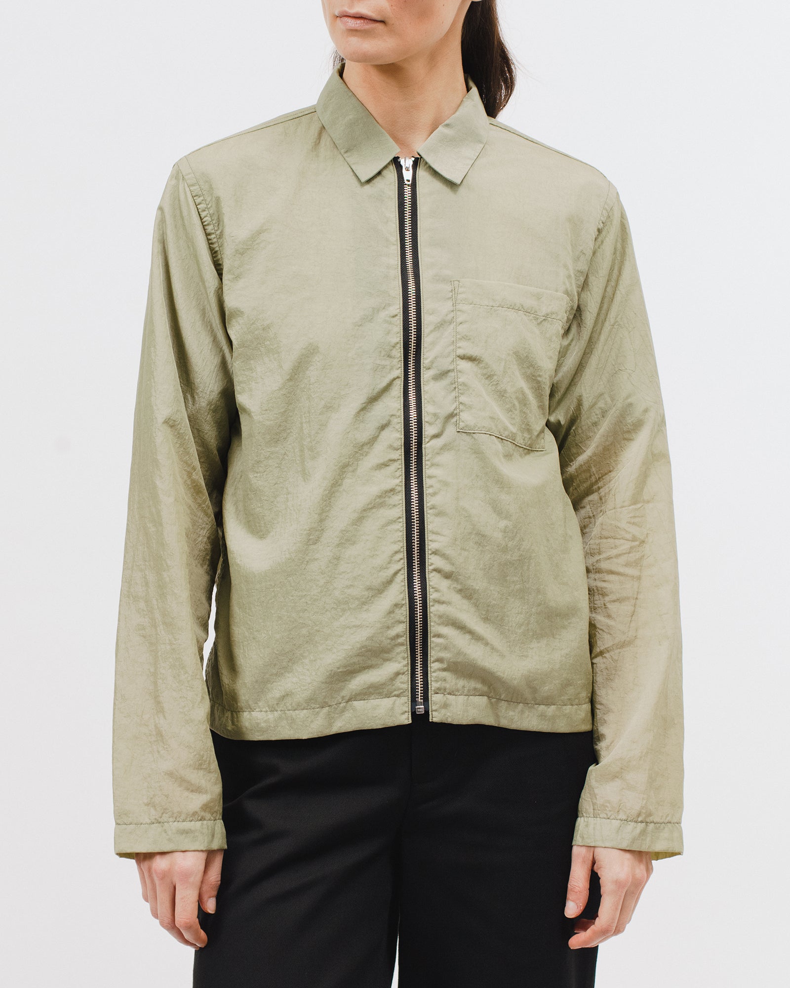 The Marble Zip Blouson is constructed from lightweight translucent nylon, and features a metal front zipper, front chest pocket, and a fold over collar.