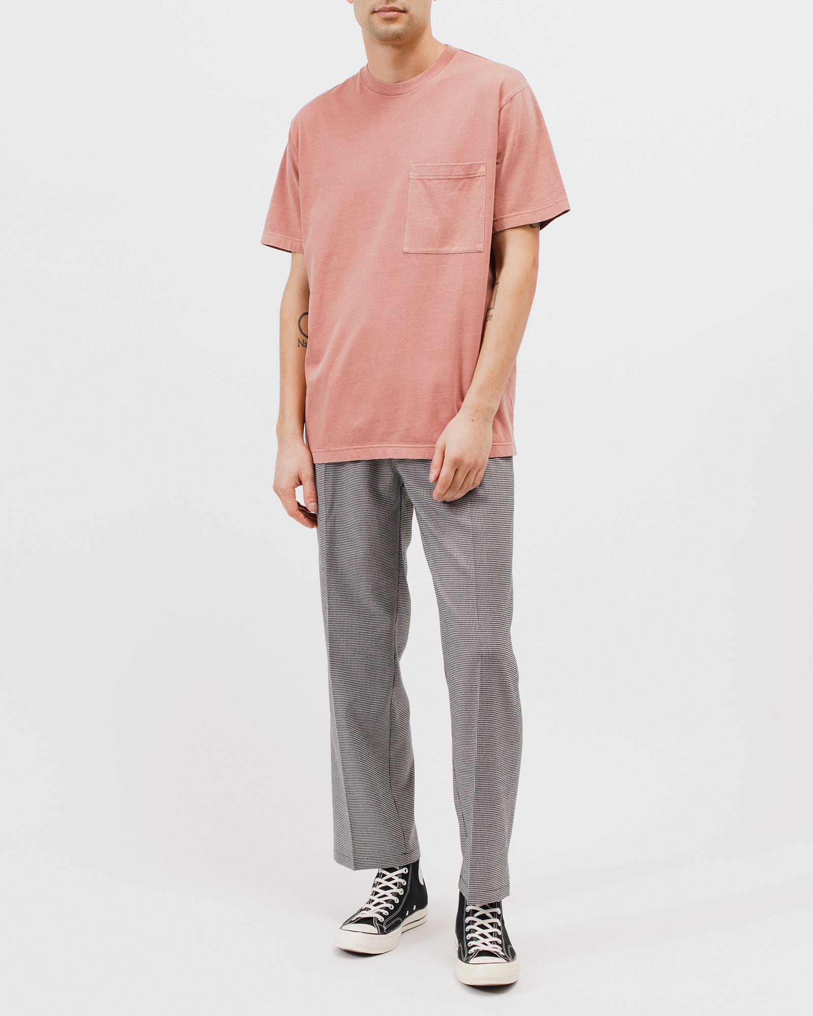 The Natural Dyed Block LS Jersey is a boxy fit long sleeve shirt produced in a dry hand cotton jersey, with a deep garment dye.